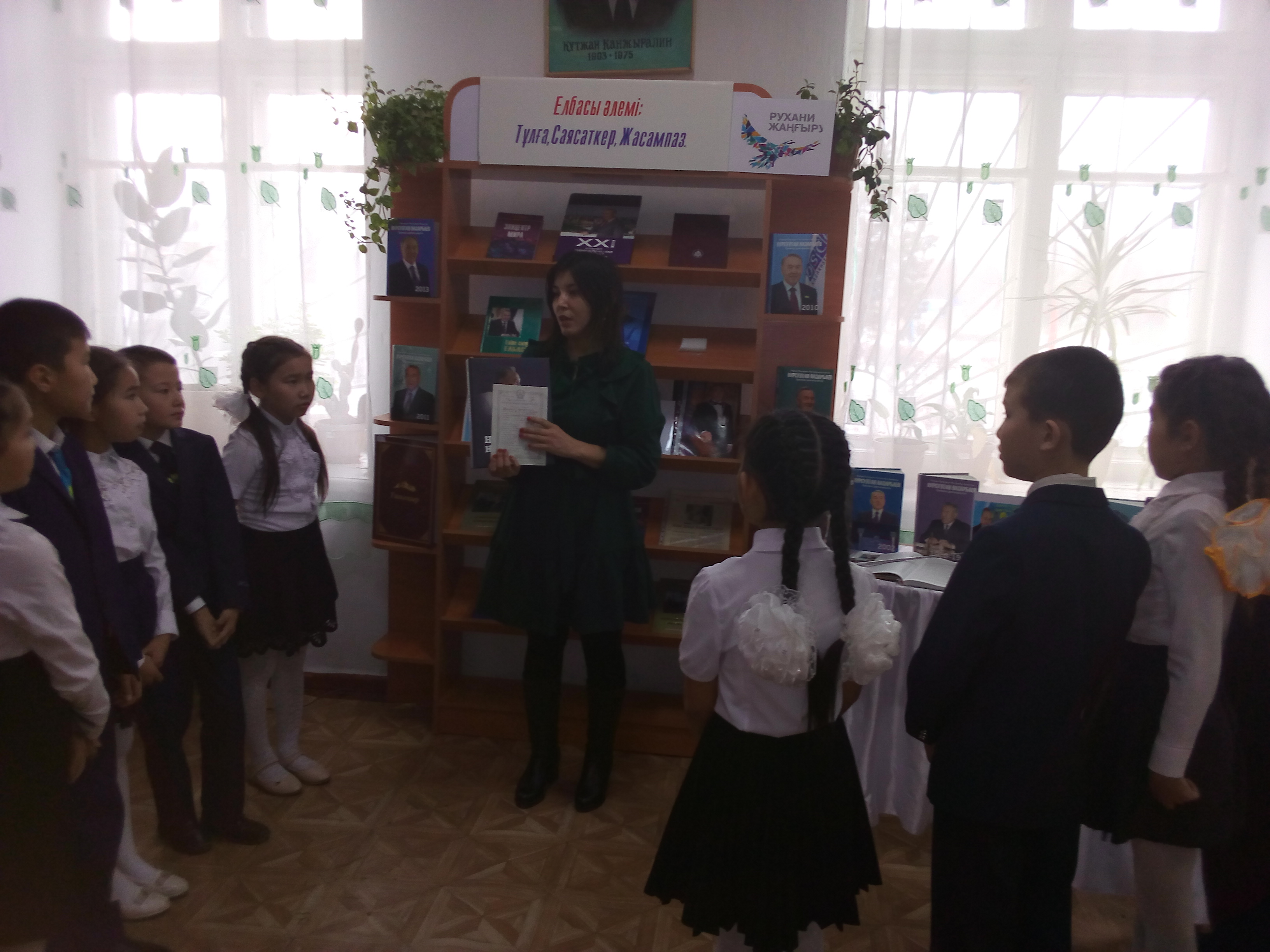 Тұңғыш Президент күні –бұл тарихи таңдау күні қазақстандықтардың Ұлт көшбасшысы. Тұңғыш Президент Нұрсұлтан Назарбаевтың төңірегіне топтасу күні . Тәуелсіздік пен бостандықтын игі мұраттарының баянды етіп, өркениетті елдерге тән қадамдар жасауда, ел алдындағы саясаткерлік, қайраткерлік, азаматтық және перзенттік парызын адал орындап, әлемдік беделге ие болған. Тәуелсіздігімізді алғаннан соң халықтың басын біріктіріп Н.Ә.Назарбаев тұңғыш елбасы болды. Елбасының бастауымен біздің Отанымыз әлемге танылды. Елім елдігін көрсетті, ерлігін тантты.Аталмыш тақырыпқа орай аудандық орталық балалар кітапханасы «Елбасы күні – елдікке құрмет мерекесі» атты әдеби сазды кеш ұйымдастырылды. Іс-шарамыздың мақсаты: Қазақ халқының тұңғыш президенті Н.Ә.Назарбаевтың өмір жолы, туып өскен, оқып білім алған, қызмет еткен жерлері туралы мағлұмат беру, елбасының өмірі жолынан үлгі ала отырып Отанын, халқын сүюге, ержүректілікке, азаматтыққа, потриоттық сезімін тәрбиелеу мақсатында өткізілді. Сонымен қатар Елбасымызға арналған слайд оқырмандар назарына үсынылып, және «Елбасы әлемі: Тұлға. Саясаткер. Жасампаз» атты кітап көрмесі ұйымдастырылып, оқырмандарға таныстырылып, шолу жасалды. Осы біздің іс-шарамызға ат салысқан Ы.Алтынсарин атындағы орта мектебінің 4 сынып оқушылары және сынып жетекшісі Қалиева Айгерім Мейрамханқызы атсалысты. Оқушылар тақпақтарын нақышына келтіріп, жатқа оқыса, екінші жағынан ән шырқалды. Жиналған оқырмандар ауданымыздың 4 мектептің 3-4 сынып оқушылары, көптеген мағлұматтар алып, жақсы лебіздерін айтып тарасты.