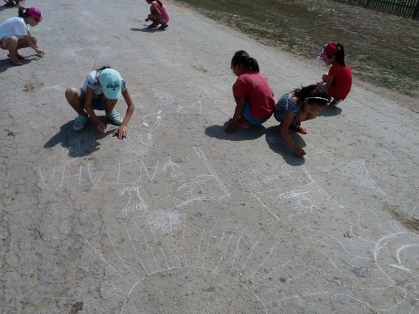 Викториналық ойындар ойнатылды. Балалар асфальтқа Астана жайында түрлі суреттер салып жарысты. Балалар қиялымен салынған суреттер өз мәресіне жетіп, ең жақсы салынған суреттері марапатталды. Қатысқан балаларға тәттілер үлестірілді. Іс шараға белсене қатысып, сурет байқауында І-орынға Зейнуллина Әйгерім, ІІ-орынға Жангелдіқызы Жәния, ІІІ-орынға Шәкірова Жаннұр ие болды. Іс шара соңы клуб меңгеруішісі Жұмағанбетова Айгүл Хайроллақызының ұйымдастырған балалардың көңілді биіне ұласты.