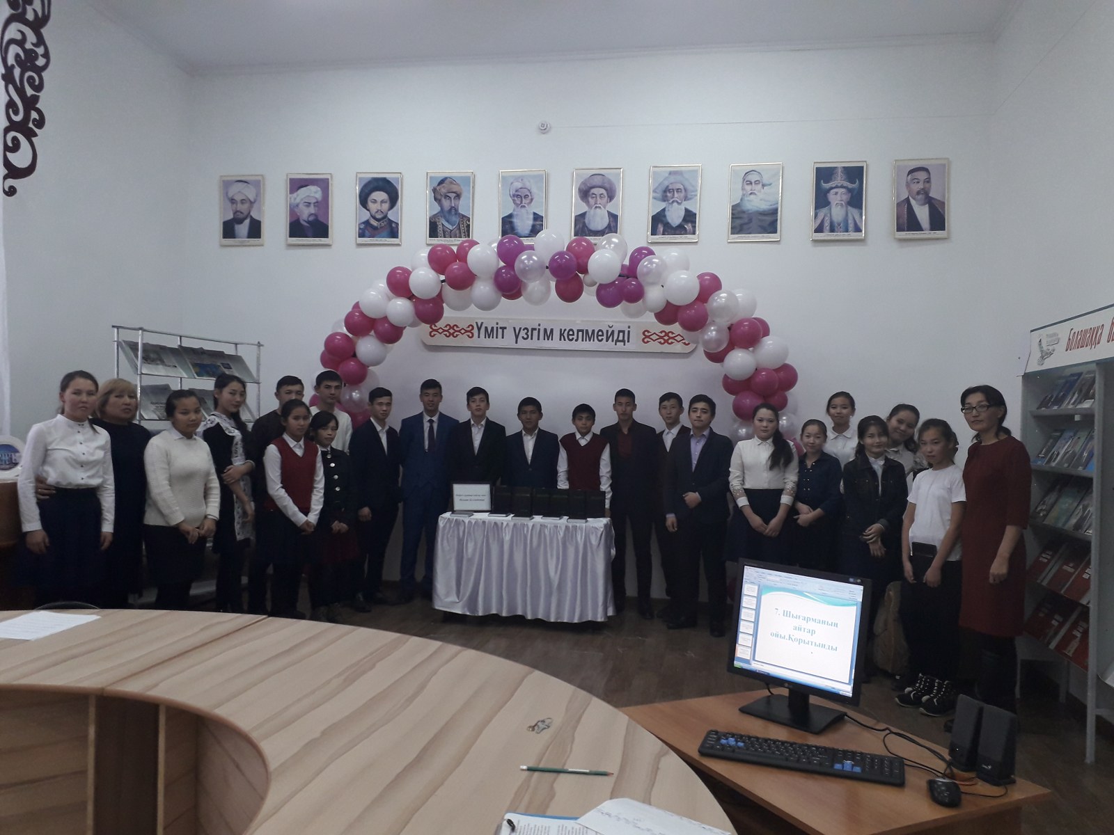 Кеш барысында «Өмірге құштар қайсар жан» атты кітап көрмесі жасалып, Немат Келімбетовтың жазған ғылыми еңбектері,оқулықтары, аудармалары жайында айтылып,шолу жасалды ,бейнеролик көрсетілді.