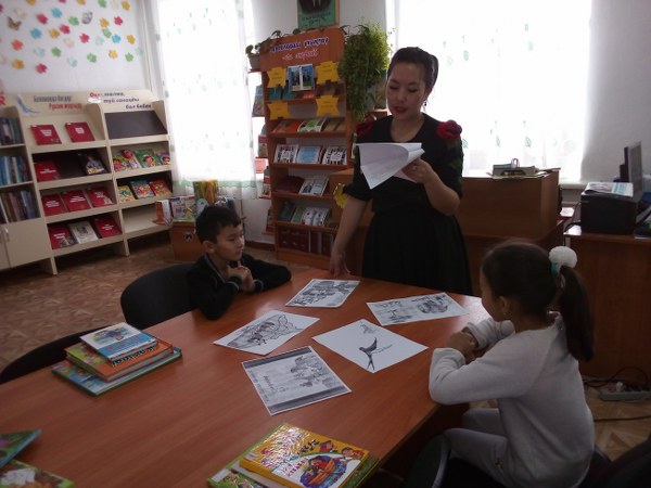 Амангелді аудандық орталық балалар кітапханасы келген оқырмандармен ойындар ойнатып, жұмбақтар жасырып, ертегілерден үзігді оқып, қызықты кітаптармен таныстыру сәті.