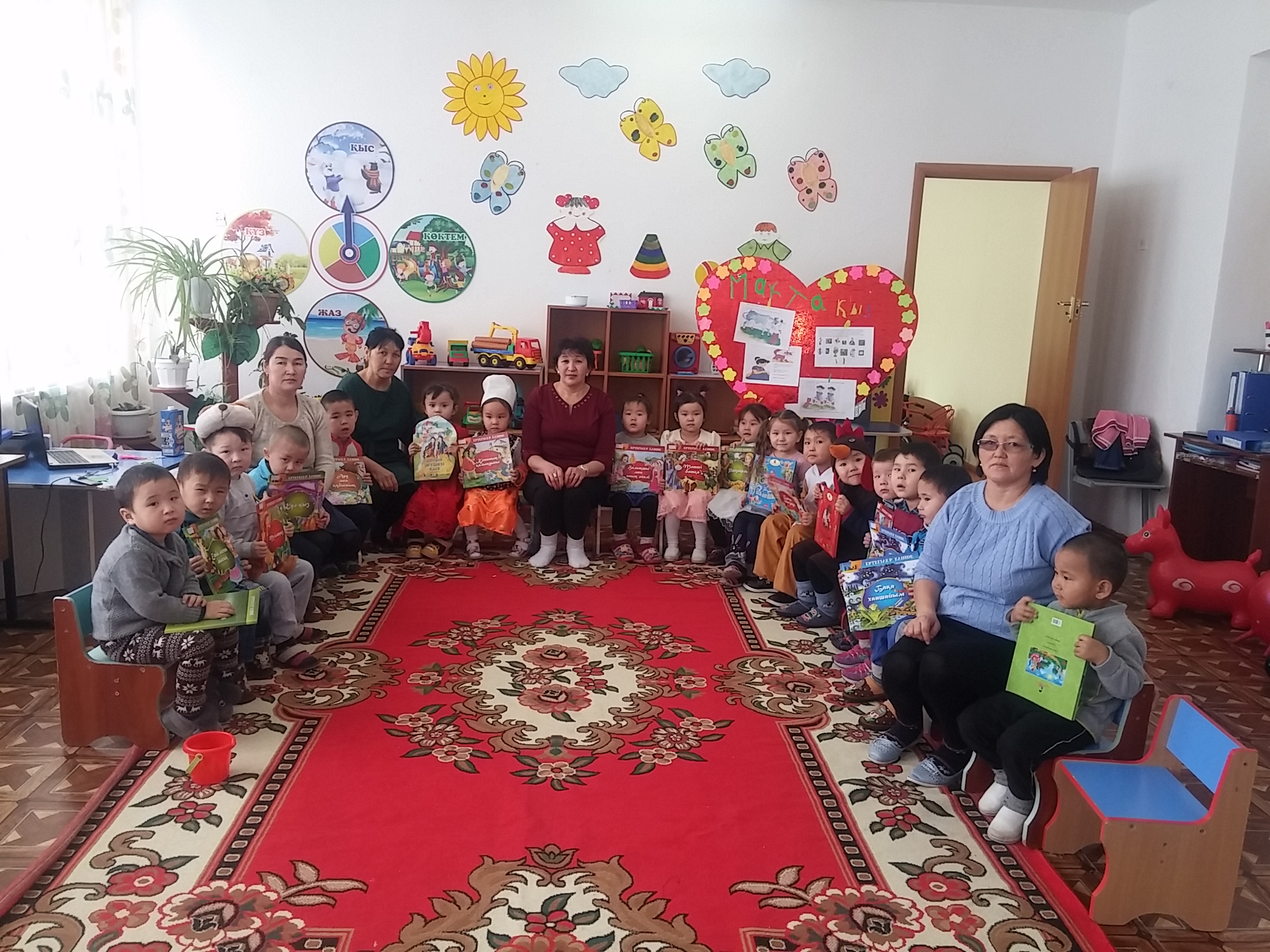 Ауыл кітапханашысымен үнемі байланыста болатын балабақша басшысы Дәрібаева Мәрзия тәрбиешілер Әбілбаева Айгүл, Нұржанова Құндызай бұл жолы да жылы шыраймен қарсы алды. Кітапханашы кішкентай балақандарға «Бақа ханшайым», «Бұбұл», «Күл қыз» атты ертегілерді оқып берді. Балалар өздерінің білетін ертегілерін айтып қосылып отырды және ертегі суреттерін көріп тамашалады.