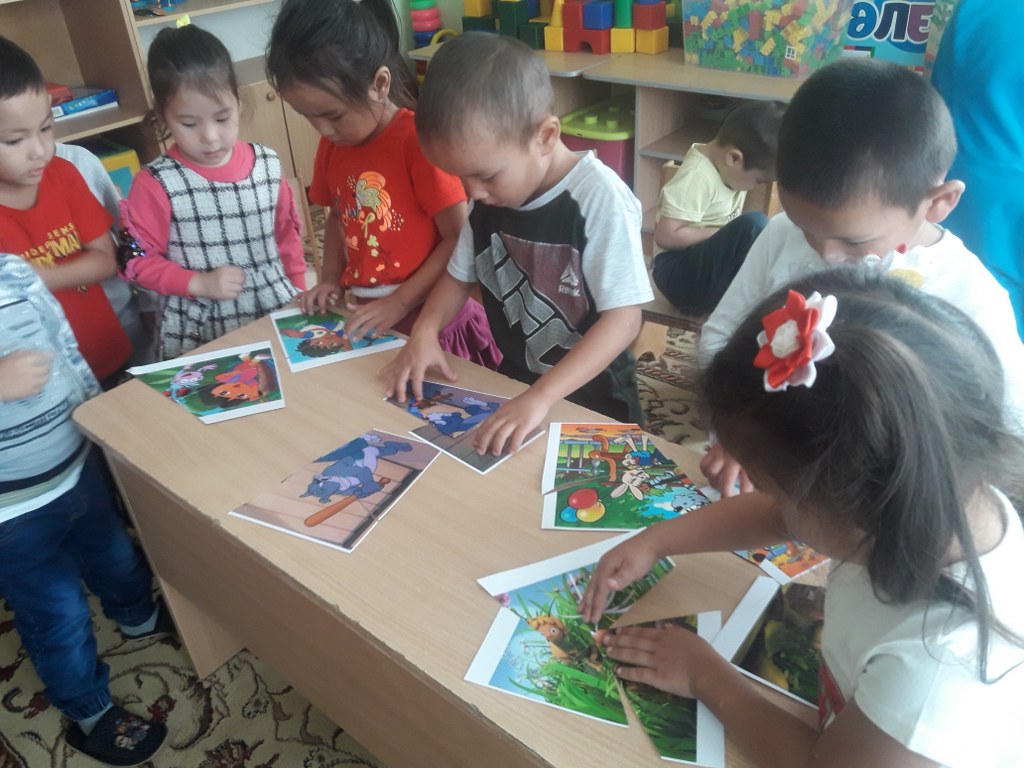 Бөліктерге бөлінген бір ертегінің суретін құрастыру.