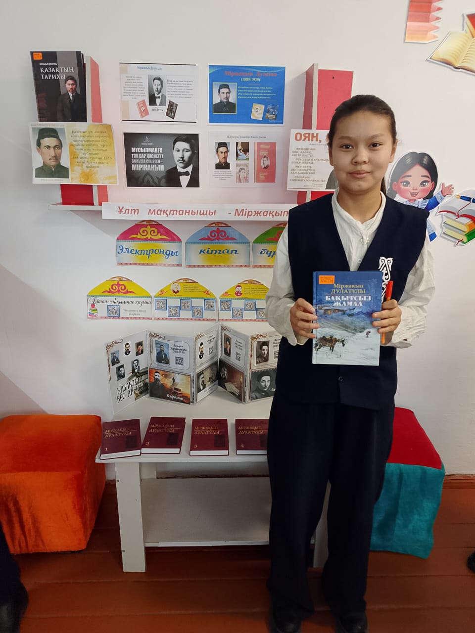 Байғабыл ауылдық кітапханашы: М.Дулатұлының туғанына 140 жыл толуына орай "Ұлт мақтанышы - Міржақып" атты кітап көрмесі 8 сынып оқушыларына жазушының өмірбаяны мен шығармалары таныстырылды.
