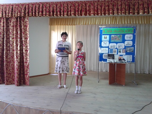 Астана айшықтары, Елбасының еңбектері жайында кітап көрмесі жасалды. Кітап көрмесімен ауыл кітапханашысы таныстырып өтті.Клуб меңгерушісі Айгүл Хайроллақызы қатысушыларды мерекемен құттықтап, бас маман Жұмабеков Бауыржан мерекелік ән шашу арнады. Қасымхан Нұрайым, Көшекова Гүлсезім ән айтып, Қожагелді Жәния би билеп, көпшілік қошеметіне ие болды. Викториналық ойындар ойналып, оқушылар түрлі сұрақтарға жауап берді. Оқушылар асфальтқа Астана жайында суреттер салып, ең жақсы салынған балалар суреттері марапатталды. Биылғы Астана қаласында өтіп жатқан ЕКСПО ны суреттеген Есентай Серікболсынның суреті сәтті шықты. Іс шара соңы балалардың көңілді биіне ұласты.